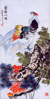 磋书画技艺,绘画技艺进一步提高了。1997年,我被山东省书画学会吸收为会员并选为理事。在“齐鲁风情”大型书画展中,我创作的《姊妹松》获得二等奖。是年,历城区文化局、区文联、区老干部局、区老年书画研究会为我举办了书画展。1999年,我创作的花鸟画《前程似锦》参加济南市第三届少数民族书画展获得一等奖,国画《丹鹤朝阳》参加山东省老年书画艺术大展获得优秀奖。2002年我创作的《红日高照、松柏长翠》参加全国庆祝建军75周年书画展获得二等奖,被中华国防文化研究会、中华慈善总会等八单位授予“慈善艺术家”称号。虽后,我的作品陆续被收录在《全国老干部诗书画作品大观》、《中国诗联名家书画精品宝典》、《山东美术全书》、《济南市美术书法摄影作品选》等多部辞书。2003年我被中国美术家协会山东分会吸收为会员。