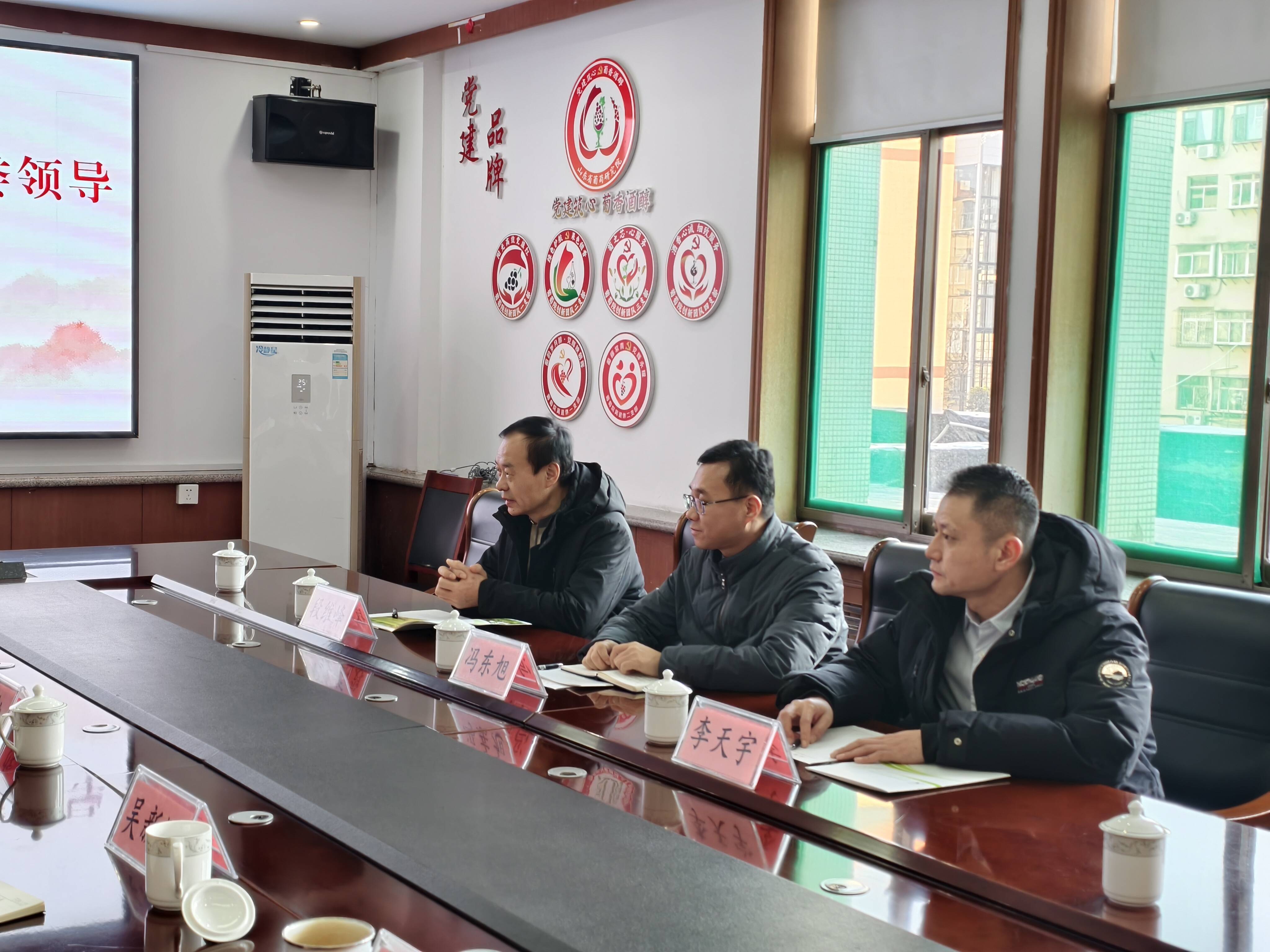 一行人首先走进省葡萄研究院科普馆,馆内通过图文展板、实物标本等形式,系统展示了山东省葡萄产业从引种试种到规模化发展的历程,以及葡萄种植技术、葡萄酒酿造工艺的创新成果。参观结束后,双方在研究院会议室举行座谈交流会。此次走访是“问需于院、服务于院”的具体行动,深入了解省葡萄研究院在人才引进、科研成果转化及配套设施建设等方面的现实需求,并针对性地提供政策扶持与资源对接服务。东风街道将以更主动的服务、更务实的举措,为省葡萄研究院发展营造优质环境,同时借力科研优势赋能社区治理和产业升级,共同书写“院地协同、共促发展”的新篇章。