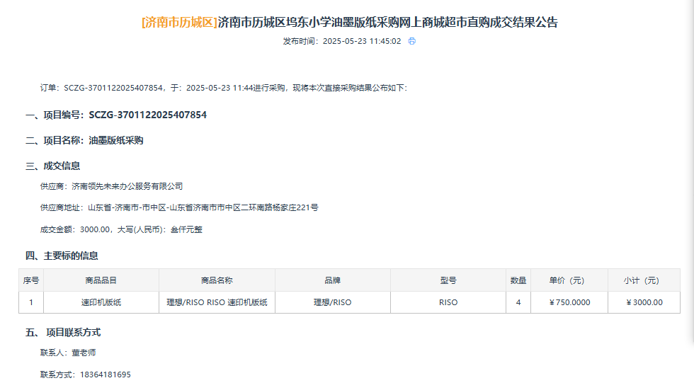 济南市历城区坞东小学速印机板纸成交公告.png