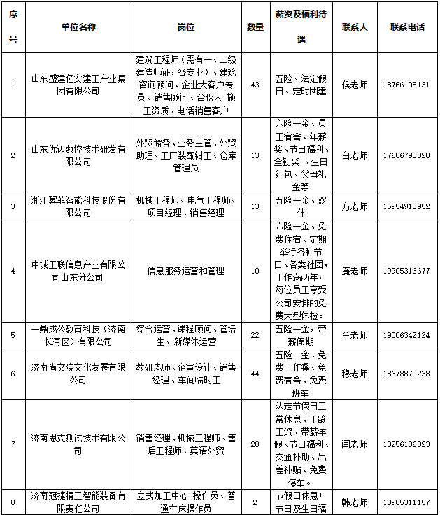 届时,山东盛建亿安建工产业集团有限公司、山东优迈数控技术研发有限公司、中城工联信息产业有限公司山东分公司等企业现场招贤纳士,涵盖建筑工程师、机械工程师、新媒体运营、管培生、项目经理、销售经理、财务内勤等各类岗位1100多个。活动当日,同时开展AI直播带岗(扫码上线观看)。