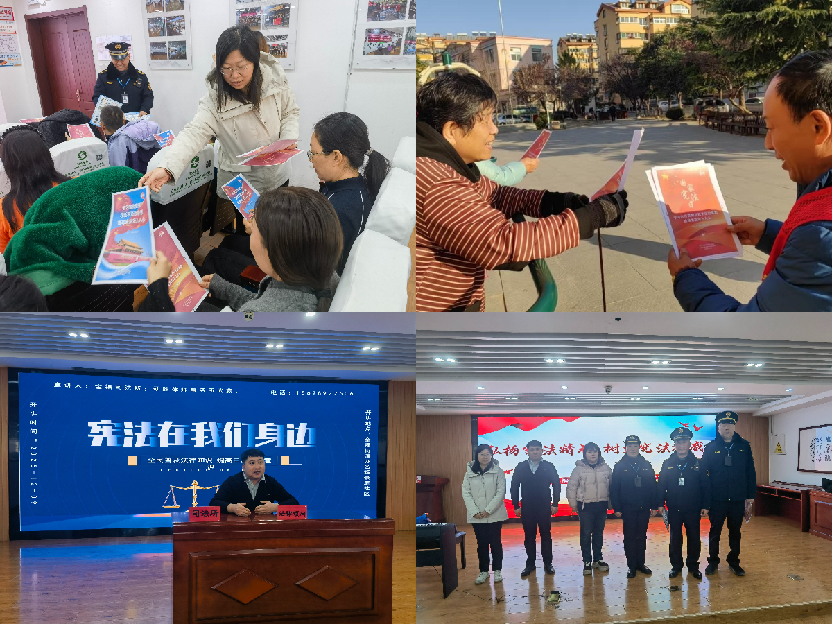 宪法宣传走进社区。12月9日,历城区司法局全福司法所邀请律师,联合街道城管执法中队在名辉豪庭社区开展“宪法在我们身边”主题讲座。各社区工作人员、普法志愿者通过发放宣传册及宣传品、走进街头巷尾进行宪法宣传,向群众普及了一系列与生活息息相关的法律常识,营造了尊法学法守法用法的浓厚氛围。宣传活动中共发放宣传资料600余份,解答法律咨询30余人次。