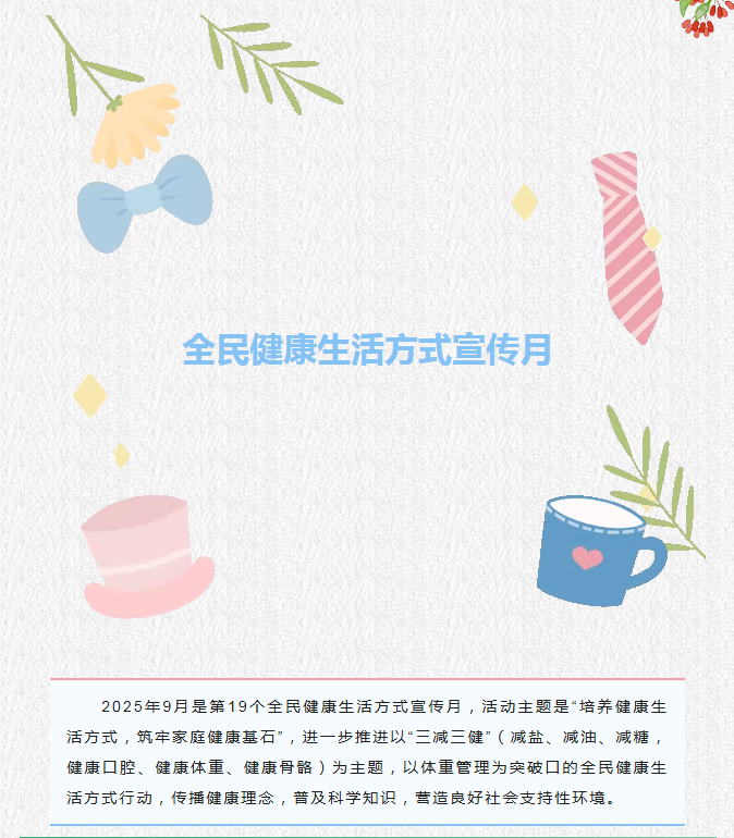 济南市历城区华山街道办事处社区卫生服务中心2025年9月健康科普之全民健康生活方式