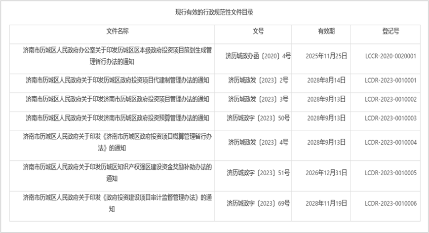 一是加强“政策文件集中发布平台”建设,完善行政规范性文件等重要政策文件的归集、发布路径,确保政府文件库的准确性、有效性。截至2024年12月底,现行有效行政规范性文件7件。