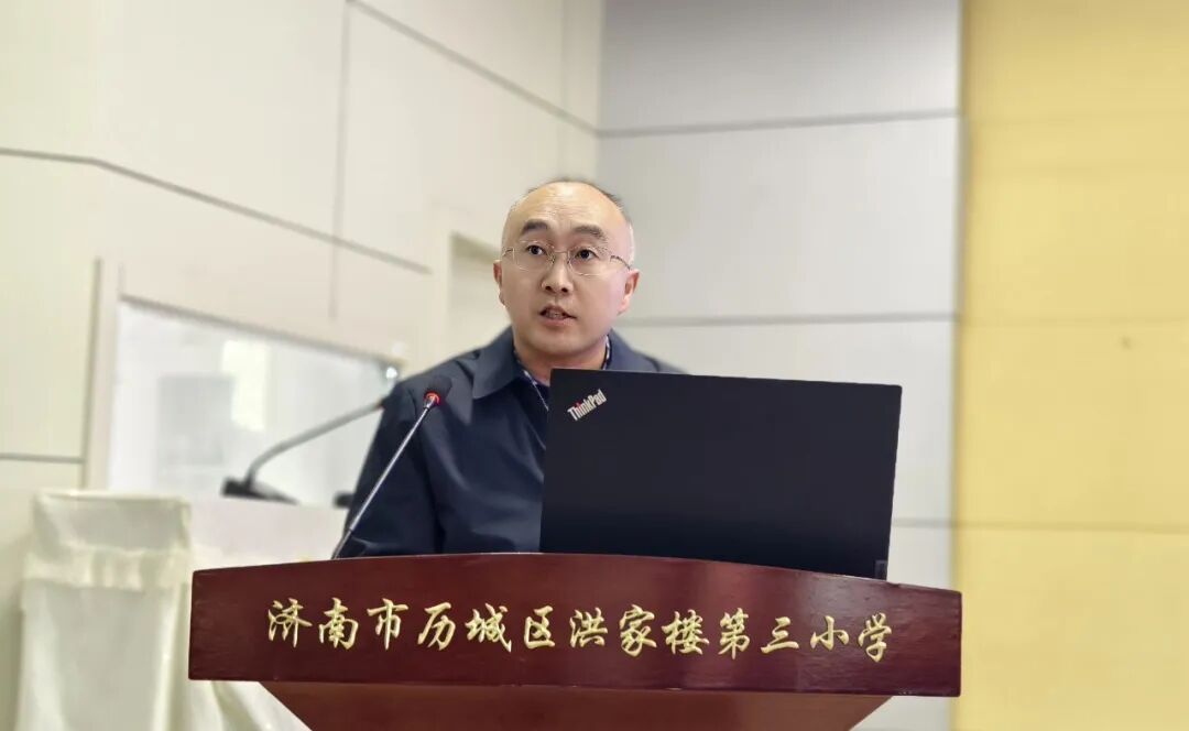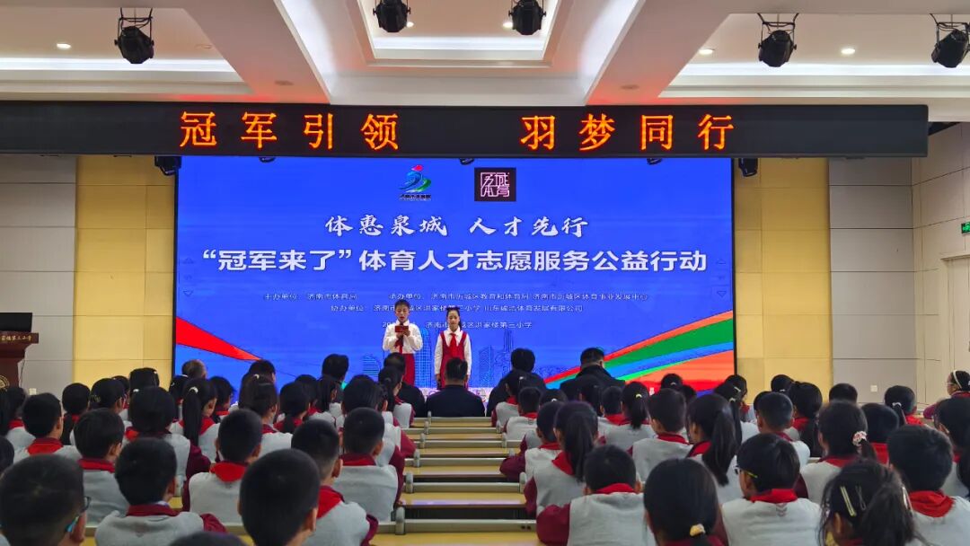 李俊慧转场至洪家楼第三小学。小小主持人以朝气蓬勃的开场点燃全场,历城区体育事业发展中心党组成员、副主任李犇与洪家楼第三小学校长彭滨分别致辞,均表达了体育事业和体育育人的重要性。