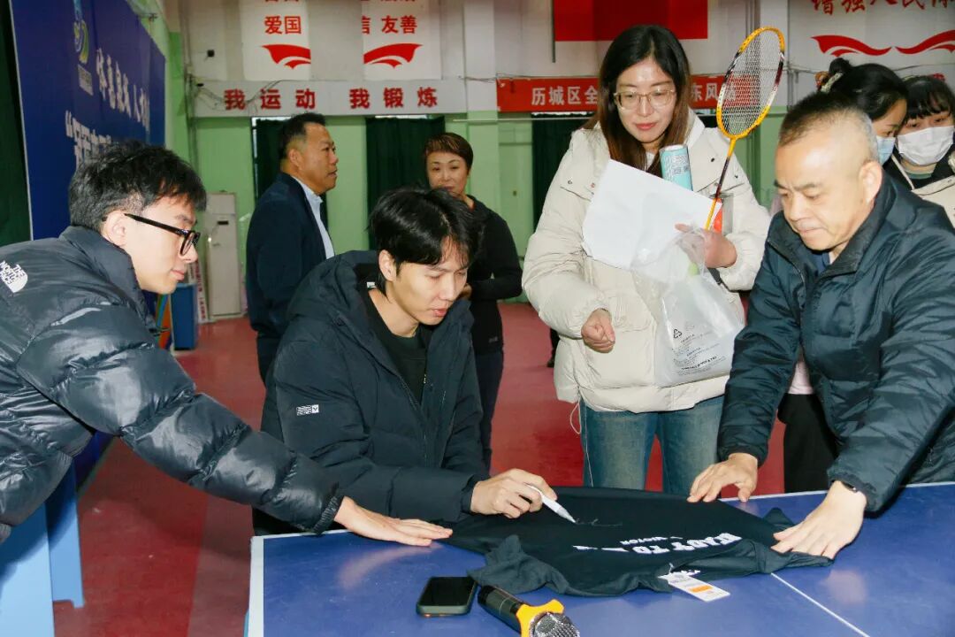 随后的趣味对抗赛将活动推向高潮——李俊慧以一敌四,让孩子们在酣畅淋漓的实战对抗中体验运动乐趣、提升羽毛球的运动技巧,感受羽毛球运动的严谨与乐趣。活动最后,李俊慧为同学们签名赠言,鼓励大家好好学习,坚持运动,争取为国争光,让体育梦想的种子在孩子们心中悄然扎根。此次的两场活动虽场景不同、受众不同,却共同诠释了“冠军引领”的深刻内涵:体育不只是竞技场上的比拼,更是连接情感、激励成长的精神桥梁。未来,历城区体育事业发展中心将加大与上级部门链接力度,持续开展“体育冠军进社区、进校园”系列活动,让体育成为凝聚邻里情感、助力青少年成长的重要纽带,营造人人爱体育、人人享运动的浓厚社会氛围。